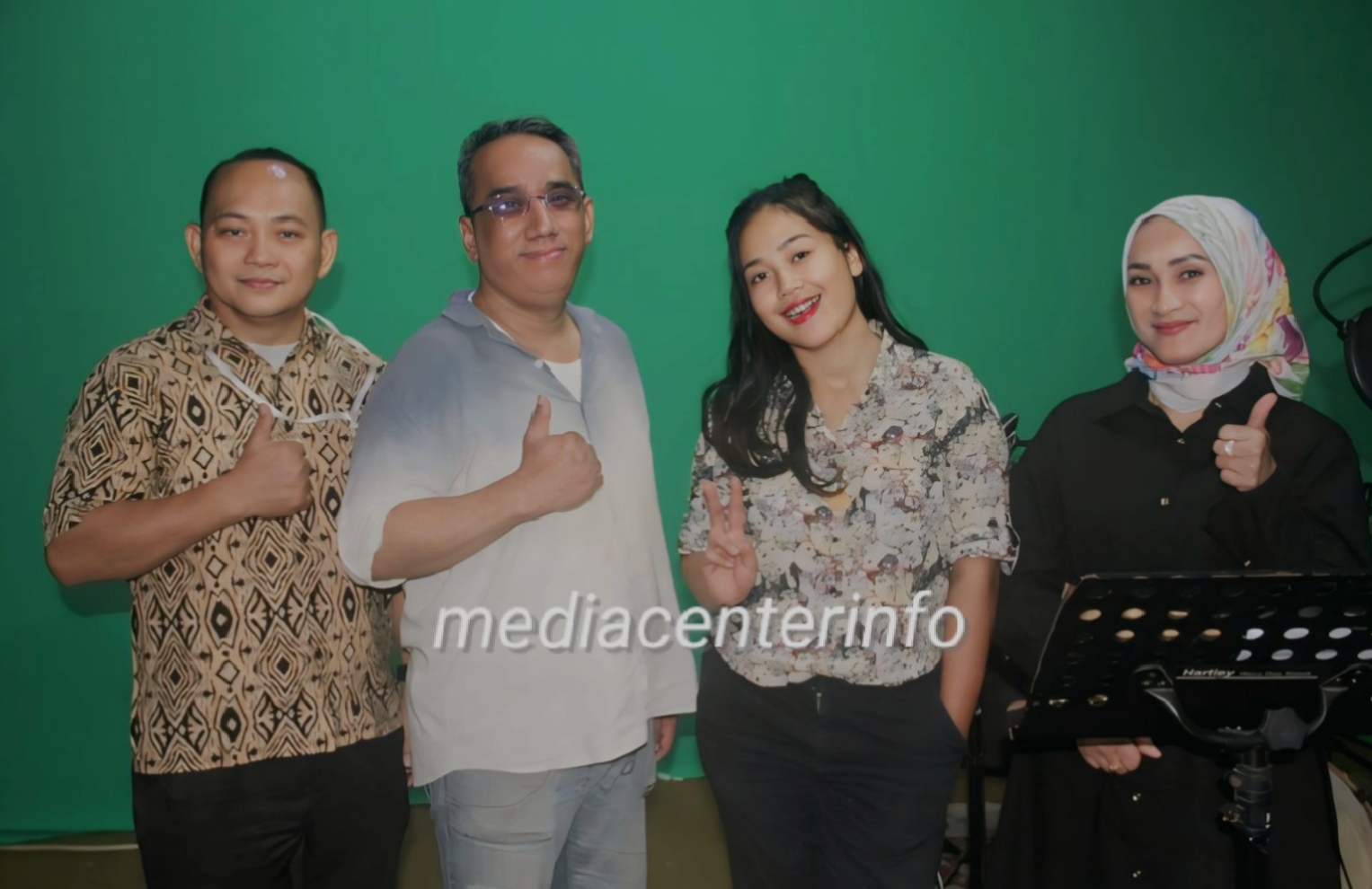 Kiri – Kanan : Kang Boy, Kang Ari, Ve, dan Linda Machmud saat take vocal di studio rekaman musik Bintaro, Kamis (17/4/2025).