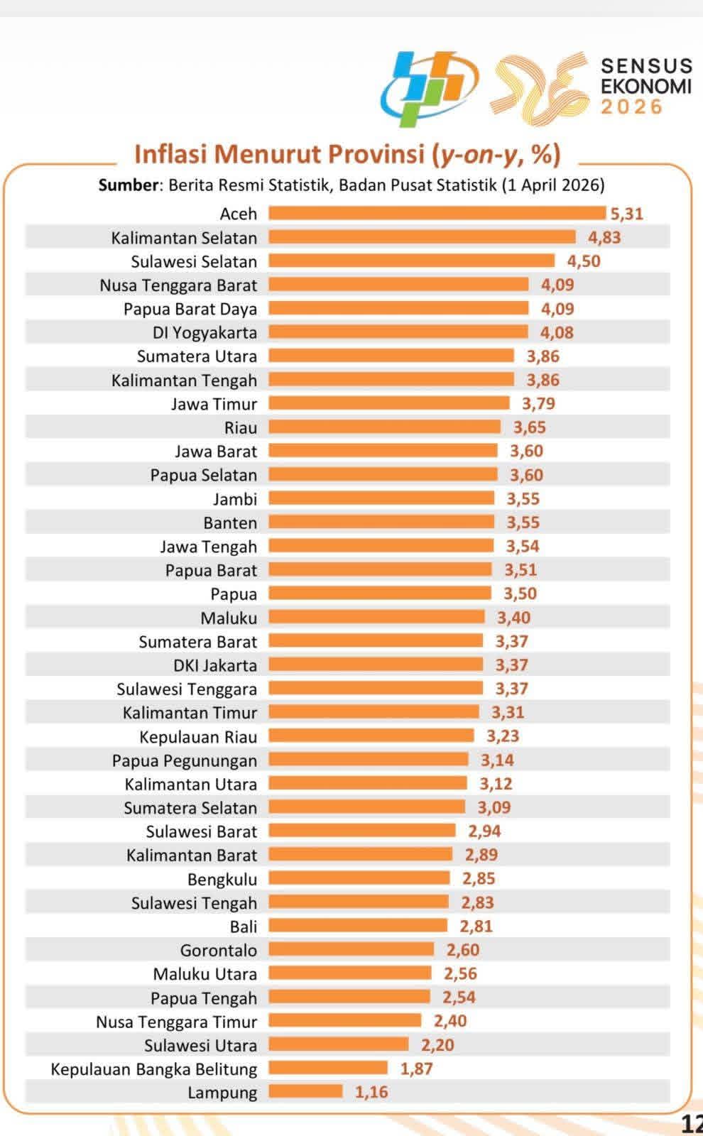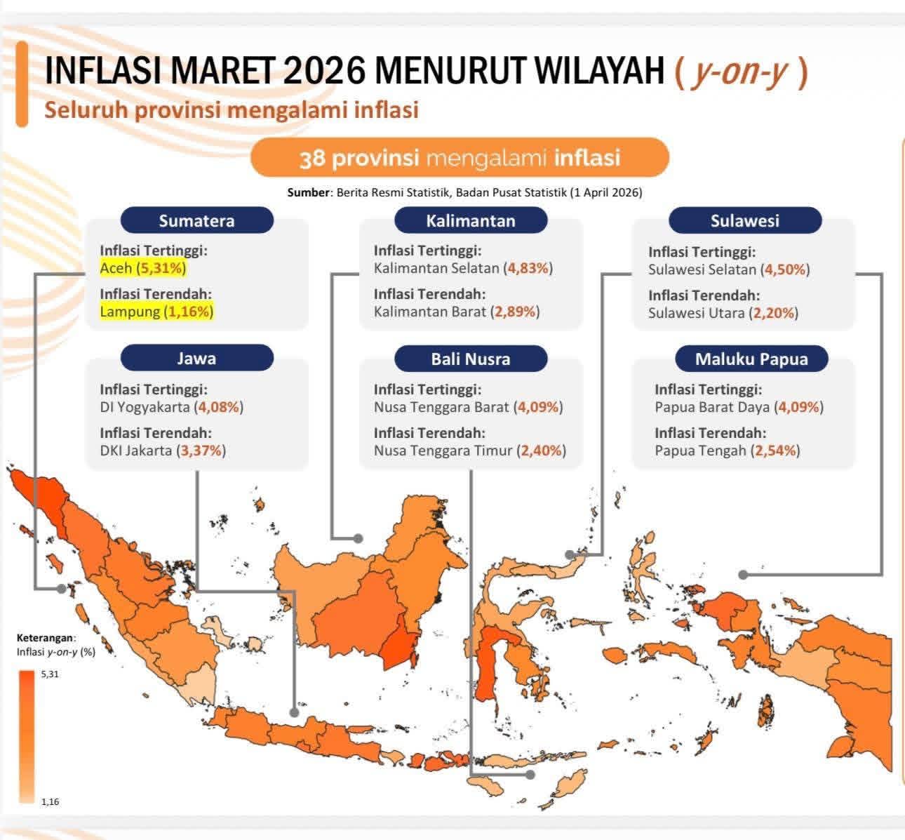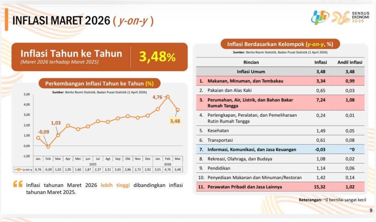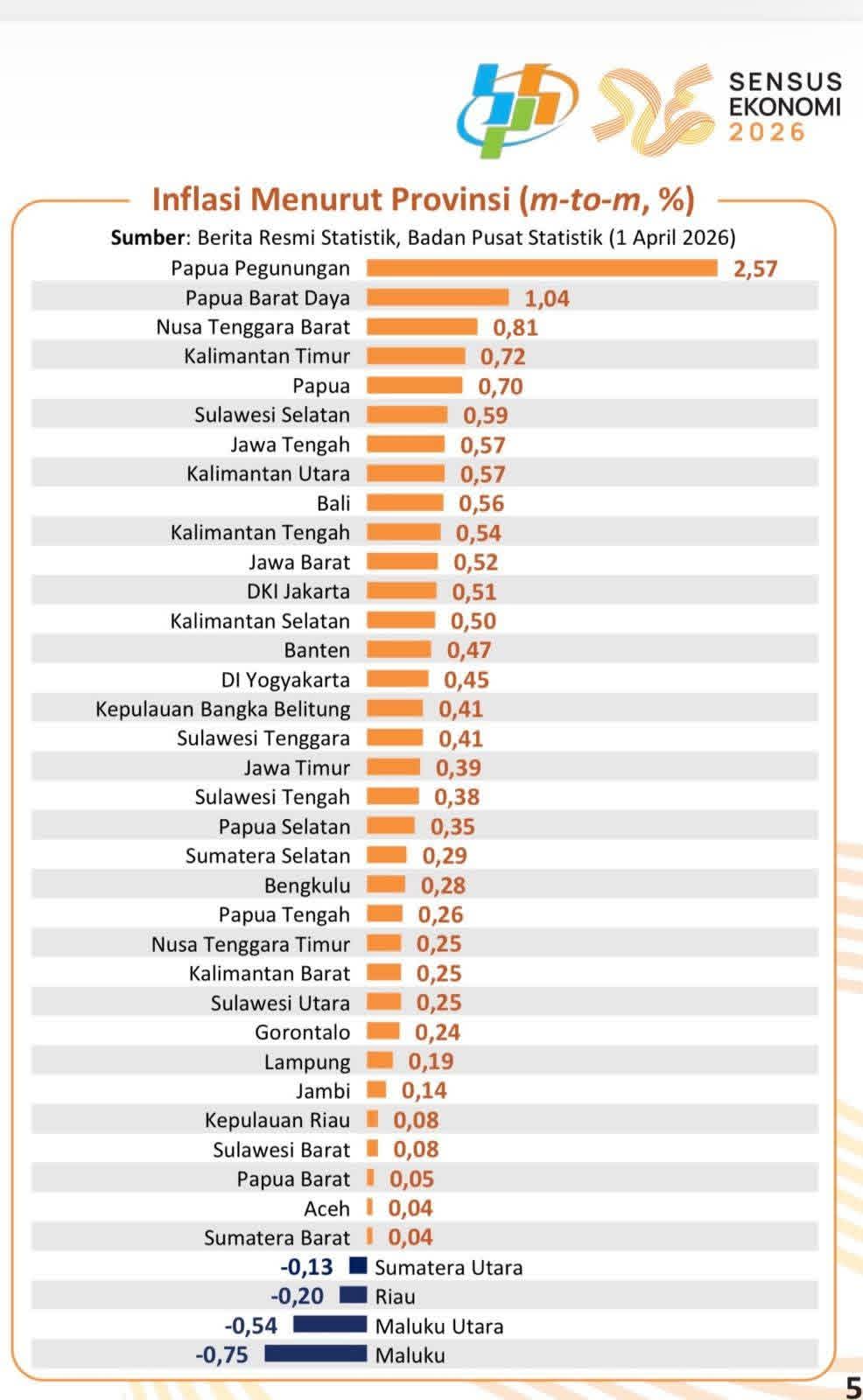 𝗕𝗲𝗿𝗱𝗮𝘀𝗮𝗿𝗸𝗮𝗻 𝗿𝗶𝗹𝗶𝘀 𝗿𝗲𝘀𝗺𝗶 𝗕𝗮𝗱𝗮𝗻 𝗣𝘂𝘀𝗮𝘁 𝗦𝘁𝗮𝘁𝗶𝘀𝘁𝗶𝗸 𝗽𝗲𝗿 𝟭 𝗔𝗽𝗿𝗶𝗹 𝟮𝟬𝟮𝟲, 𝗶𝗻𝗳𝗹𝗮𝘀𝗶 𝗯𝘂𝗹𝗮𝗻𝗮𝗻 (𝗺-𝘁𝗼-𝗺) 𝗠𝗮𝗿𝗲𝘁 𝟮𝟬𝟮𝟲 𝗱𝗶 𝗦𝘂𝗹𝗮𝘄𝗲𝘀𝗶 𝗨𝘁𝗮𝗿𝗮 𝘁𝗲𝗿𝗰𝗮𝘁𝗮𝘁 𝘀𝗲𝗯𝗲𝘀𝗮𝗿 𝟬,𝟰𝟭 𝗽𝗲𝗿𝘀𝗲𝗻, 𝗯𝗲𝗿𝗮𝗱𝗮 𝗱𝗮𝗹𝗮𝗺 𝗸𝗮𝘁𝗲𝗴𝗼𝗿𝗶 𝘁𝗲𝗿𝗸𝗲𝗻𝗱𝗮𝗹𝗶 𝗱𝗶 𝘁𝗲𝗻𝗴𝗮𝗵 𝗺𝗲𝗻𝗶𝗻𝗴𝗸𝗮𝘁𝗻𝘆𝗮 𝘁𝗲𝗸𝗮𝗻𝗮𝗻 𝗽𝗲𝗿𝗺𝗶𝗻𝘁𝗮𝗮𝗻 𝗻𝗮𝘀𝗶𝗼𝗻𝗮𝗹. 𝗟𝗲𝗯𝗶𝗵 𝗸𝘂𝗮𝘁 𝗹𝗮𝗴𝗶, 𝘀𝗲𝗰𝗮𝗿𝗮 𝘁𝗮𝗵𝘂𝗻𝗮𝗻 (𝘆𝗲𝗮𝗿-𝗼𝗻-𝘆𝗲𝗮𝗿), 𝗶𝗻𝗳𝗹𝗮𝘀𝗶 𝗦𝘂𝗹𝘂𝘁 𝗵𝗮𝗻𝘆𝗮 𝘀𝗲𝗸𝗶𝘁𝗮𝗿 𝟮,𝟮𝟬 𝗽𝗲𝗿𝘀𝗲𝗻, 𝗺𝗲𝗻𝗷𝗮𝗱𝗶𝗸𝗮𝗻𝗻𝘆𝗮 𝘀𝗮𝗹𝗮𝗵 𝘀𝗮𝘁𝘂 𝘆𝗮𝗻𝗴 𝘁𝗲𝗿𝗲𝗻𝗱𝗮𝗵 𝗱𝗶 𝗜𝗻𝗱𝗼𝗻𝗲𝘀𝗶𝗮.